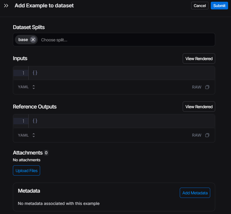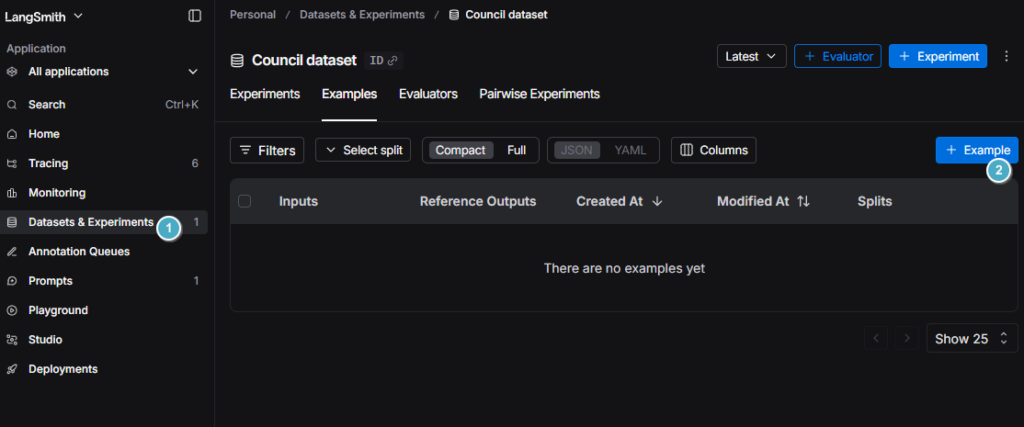 Datasets & Experiments -> +Example 버튼