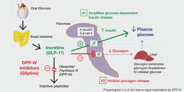 - 작용 기전: 우리 몸에서 분비되는 인크레틴 호르몬인 GLP-1(Glucagon-Like Peptide-1)을 모방합니다. 인슐린 분비를 촉진하고 글루카곤 분비를 억제하며, 뇌의 시상하부에 작용해 포만감을 높이고 위 배출 속도를 늦춥니다.